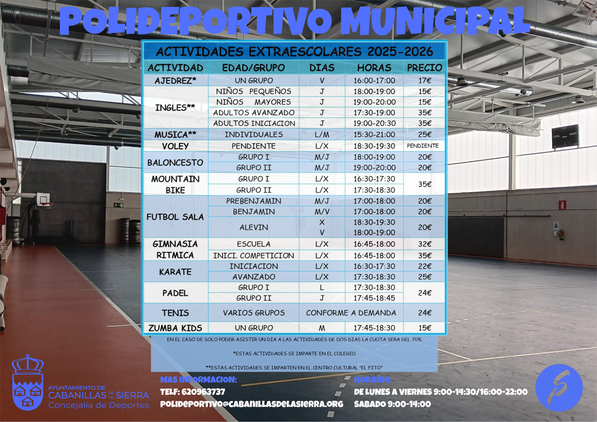 Las inscripciones para las actividades del polideportivo y para las extraescolares se pueden hacer por la SEDE ELECTRÓNICA, mediante este enlace.