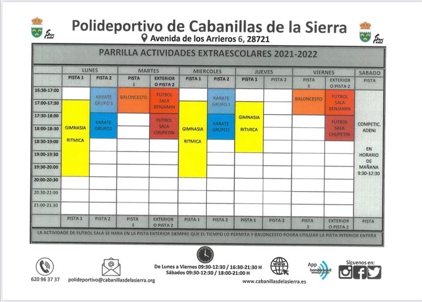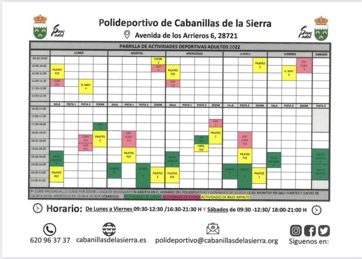 Previous Next Deportes 11 febrero 2022 Visto: 1064 Información de las actividades para 2022 del Polideportivo Municipal de Cabanillas Leer más...